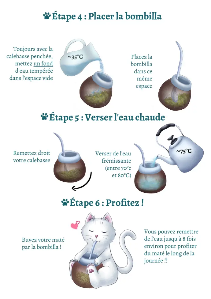 Voici des dessins expliquant la façon la plus connue de préparer un maté de manière traditionnelle !